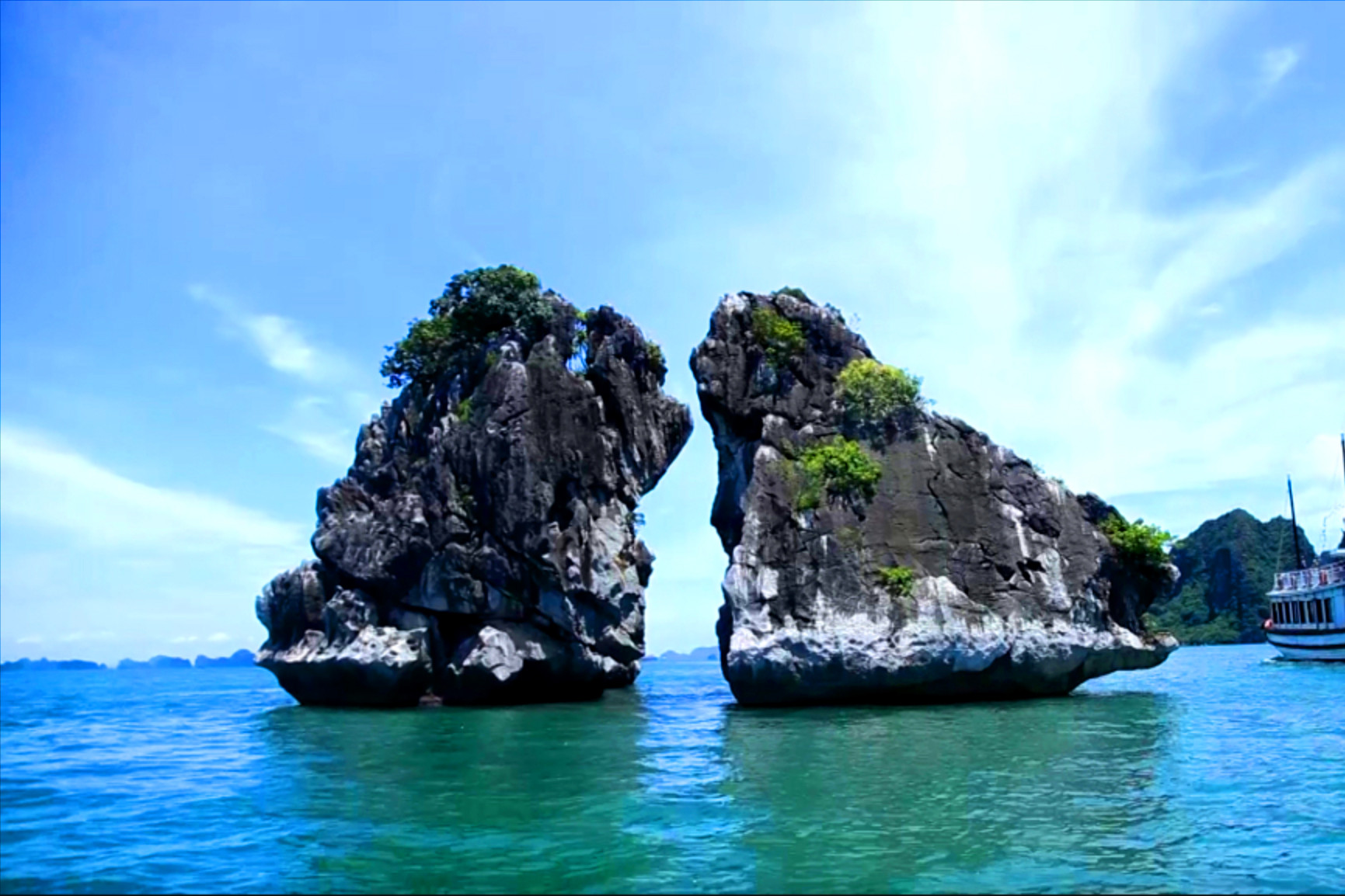 Thực chất, khi thủy triều xuống du khách mới có thể nhìn thấy “đôi chân” của cặp gà này. Tấm thân khổng lồ ấy đã đứng sừng sững trên đôi chân nhỏ bé, được những sóng vỗ mài trải qua hàng ngàn năm.