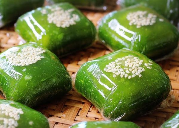 Bánh được gói trong hộp vuông bằng lá dong hoặc lá chuối, tượng trưng cho đất, cho sự vững bền. Bên trong là lớp vỏ làm từ bột nếp trộn nước hoa bưởi, có độ trong dẻo như ngọc. Nhân bánh gồm đậu xanh giã nhuyễn, sợi dừa, đường kính, và chút vừng rang – vị ngọt thanh, béo nhẹ, thơm mùi quê. Khi hấp lên, bánh trong veo, nhân vàng ẩn hiện như ánh nắng sớm trong sương, vừa thanh nhã, vừa đằm thắm.