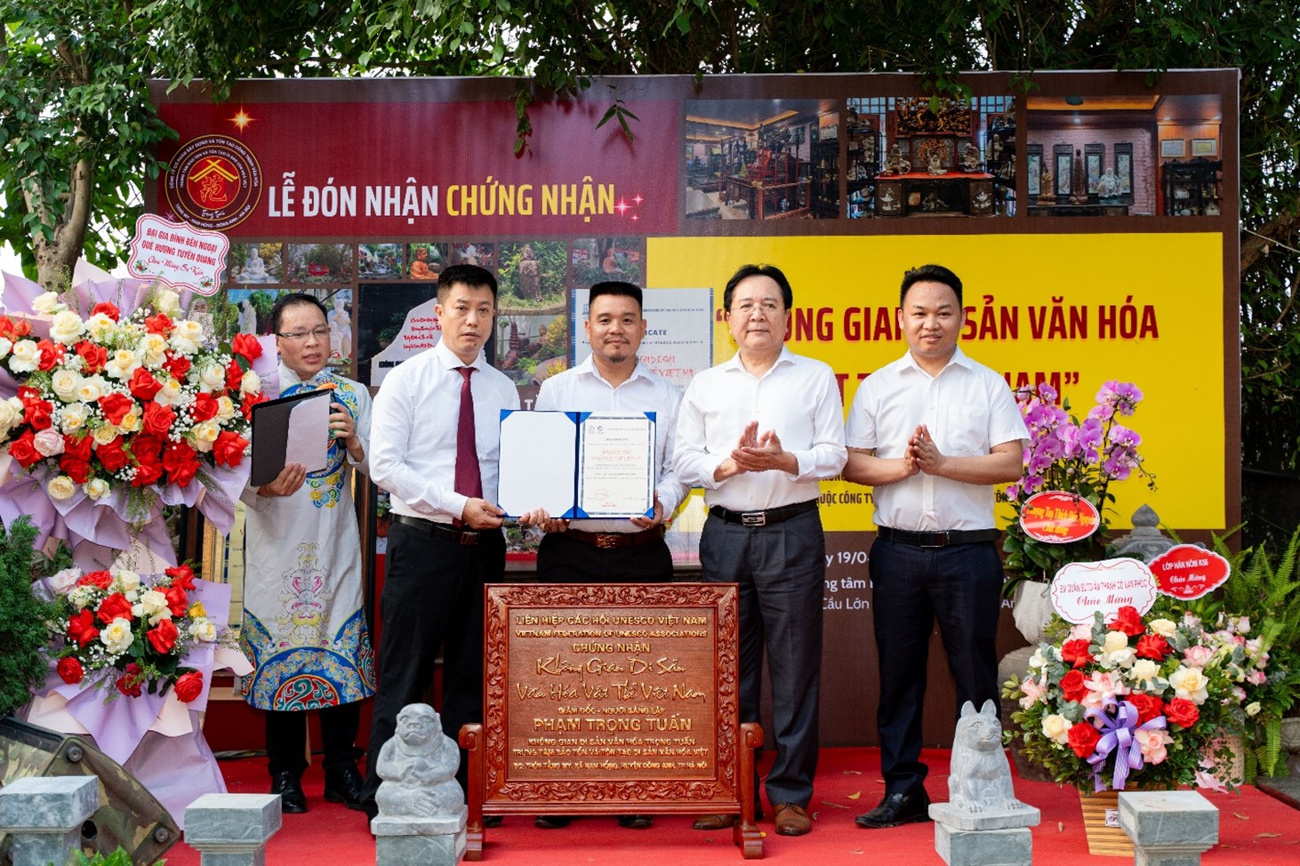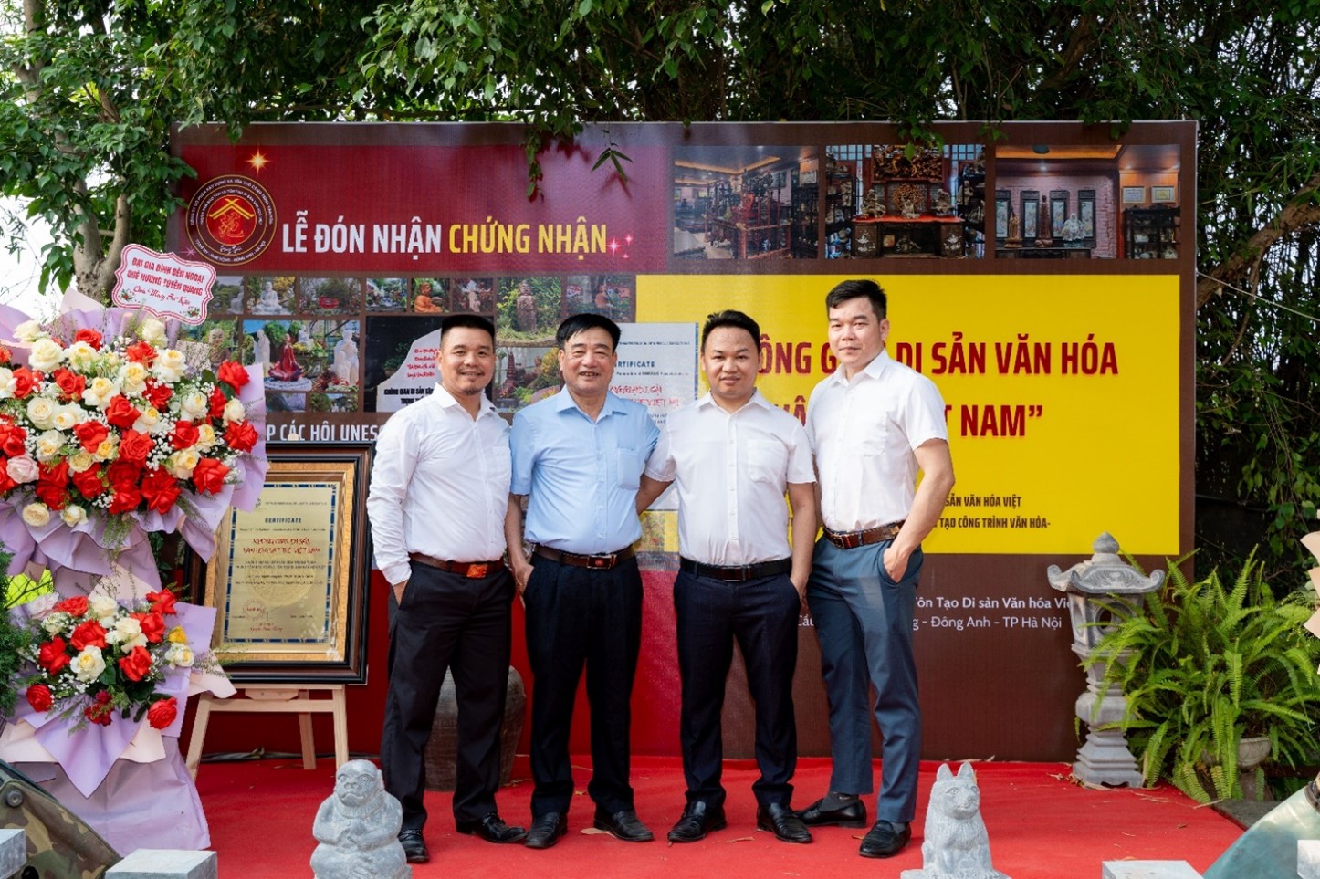 Ngày 19/4/2025 tại xã Nam Hồng, huyện Đông Anh, TP Hà Nội, Liên hiệp các Hội UNESCO Việt Nam đã trao chứng nhận “ Không gian di sản văn hóa vật thể Việt Nam”cho Trung tâm Bảo tồn và Tôn tạo Di sản Văn hóa Việt – trực thuộc công ty cổ phần xây dựng và tôn tạo công trình Văn hóa , đơn vị đã có nhiều cống hiến trong việc gìn giữ và phát huy các di sản văn hóa vật thể.